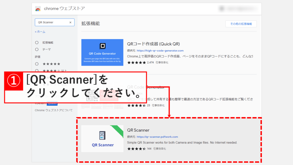 步访问 Chrome 网上应用店并搜索 QR 扫描仪