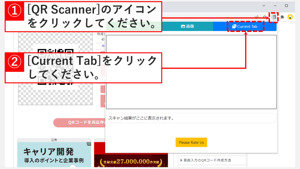 [当前选项卡]单击 时,二维码扫描结果将显示在上一个窗口的底部。