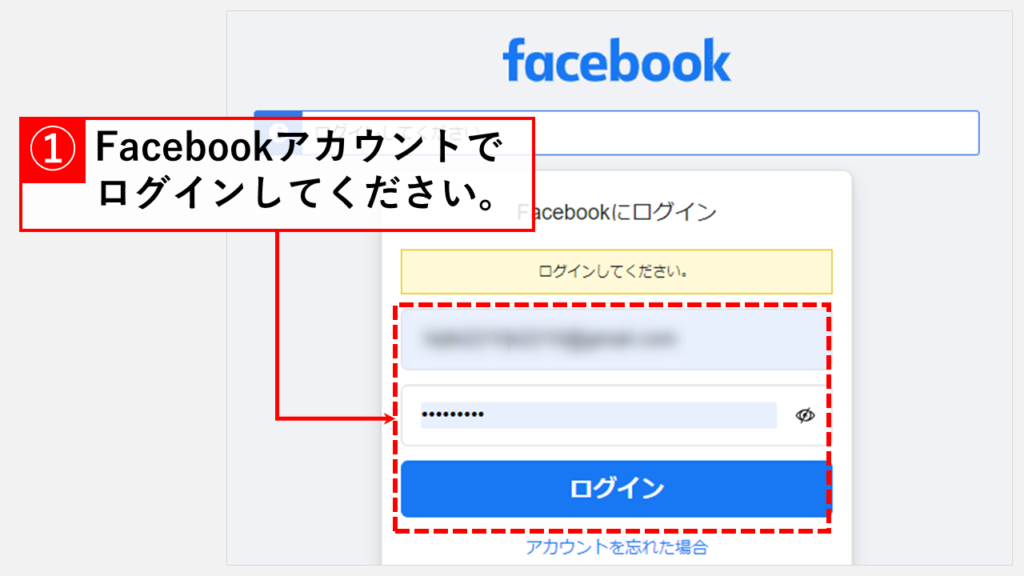将显示登录屏幕,因此请使用您的 Facebook 帐户登录。