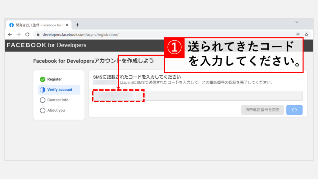 一旦您点击[发送验证短信],Facebook就会向您发送验证码。