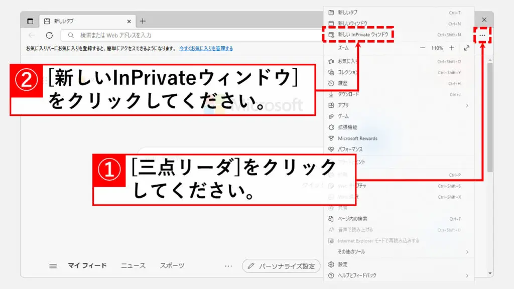 以下是如何仅使用鼠标操作从 Microsoft Edge 屏幕使用隐身模式(InPrivate 浏览)。