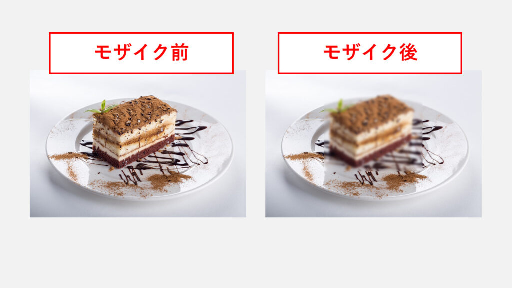 可以看到蛋糕的部分与马赛克之前相比变得模糊了,说明已经应用了马赛克。