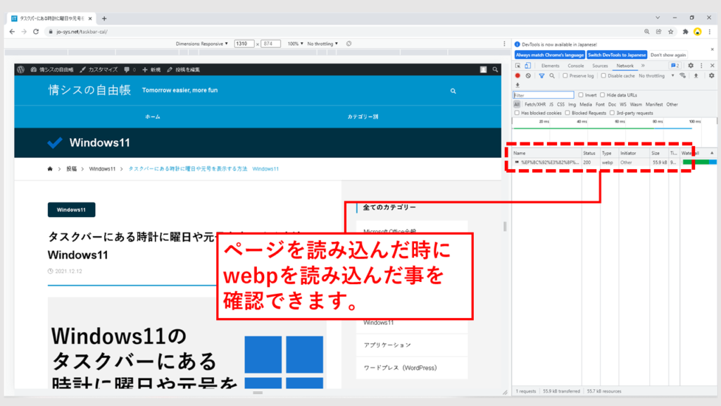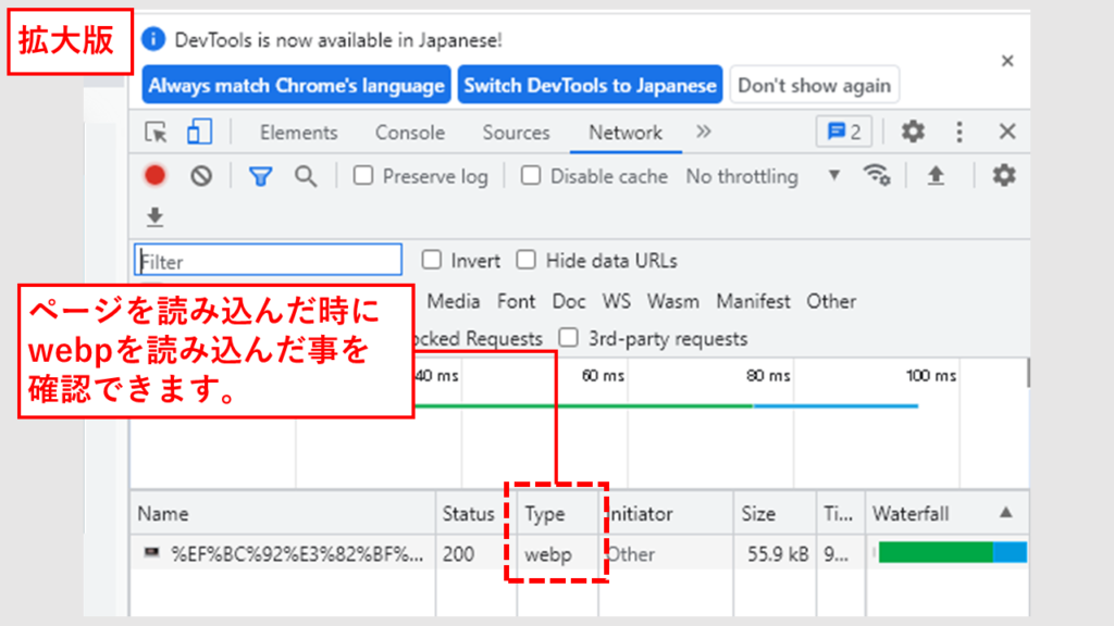 要检查实际页面是否使用Webp,请使用Google Chrome的开发者工具。