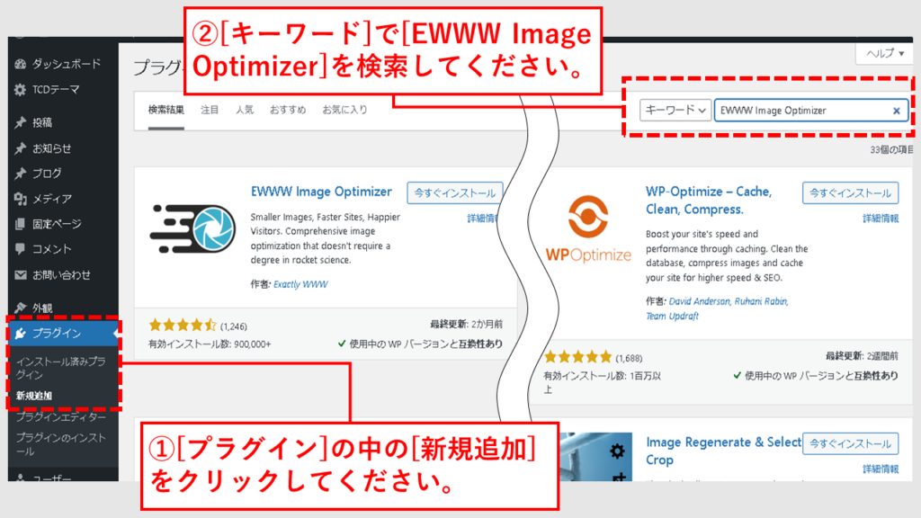 在右上角显示的[关键字]中搜索[EWWW Image Optimizer]。