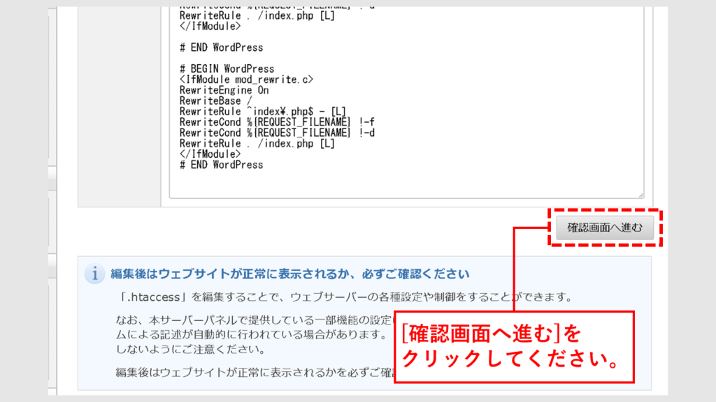 当您单击[选择]时,将打开一个名为[.htaccess编辑]的页面。