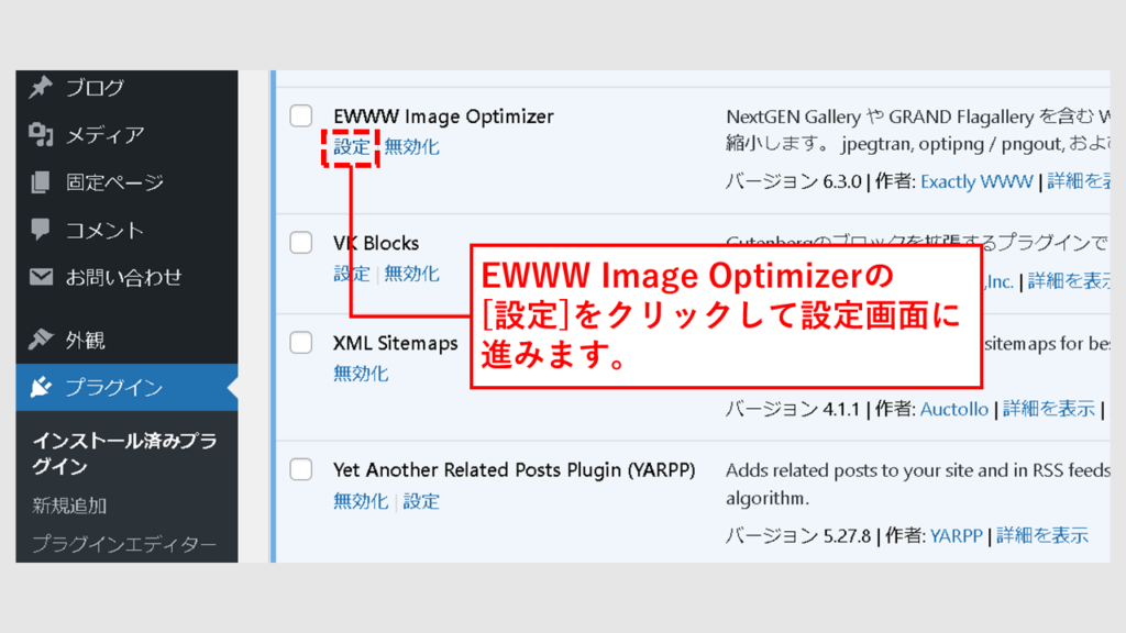 单击 EWWW Image Optimizer 中的 [设置] 进入设置屏幕。