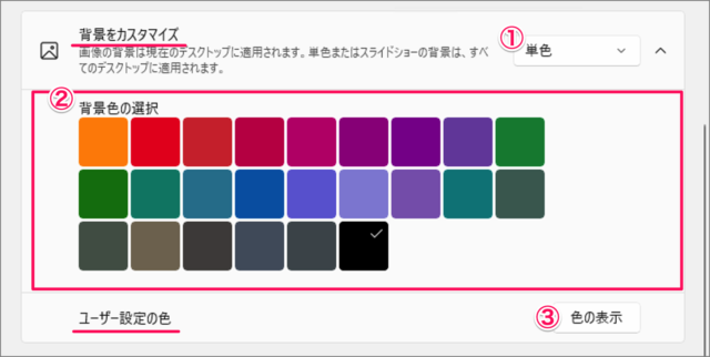 - 或者,选择显示颜色并从颜色图表中选择您喜欢的背景颜色。