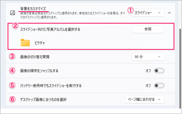 如果要将桌面背景设为幻灯片,请按如下方式设置。