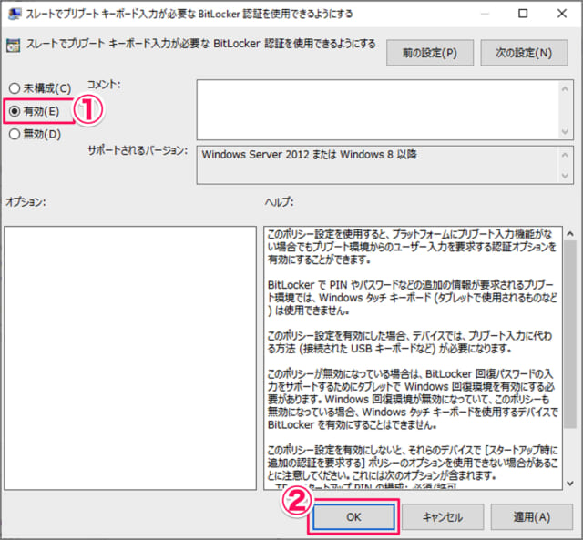 ② 双击“在 Slate 上使用需要预键盘输入的 BitLocker 身份验证”。
