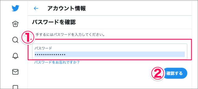 然后,将显示密码验证屏幕,因此①输入您的“密码”并单击②“确认”。