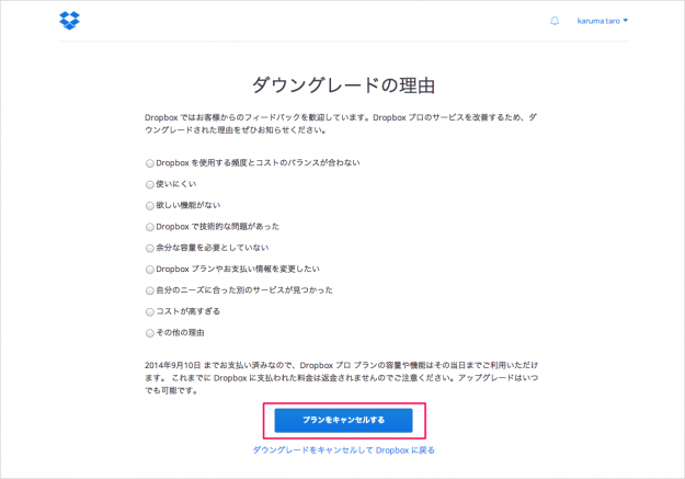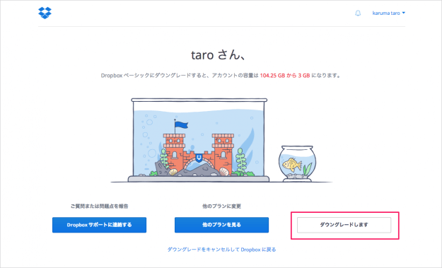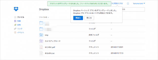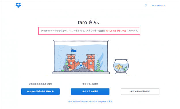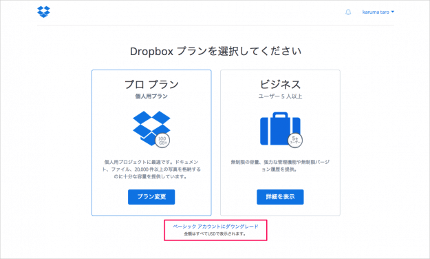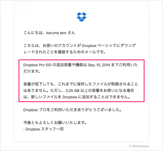 Dropbox Pro 100 の追加容量や機能は XXXX までご利用いただけます。 容量が低下しても、これまでに保存したファイルが削除されることはありません。ただし、○○GB以上の容量をお使いになる場合は、新しいファイルをDropboxに追加することはできません。