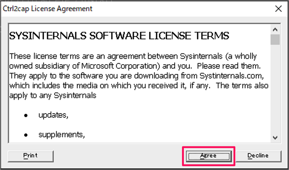 键入以下命令来安装 Ctrl2Cap。ctrl2cap.exe /install -