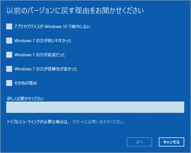 选择“恢复到先前版本的原因”并单击“下一步”。