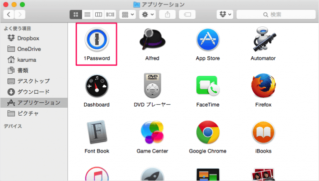从 Finder 中的“应用程序”文件夹启动应用程序“1Password”。