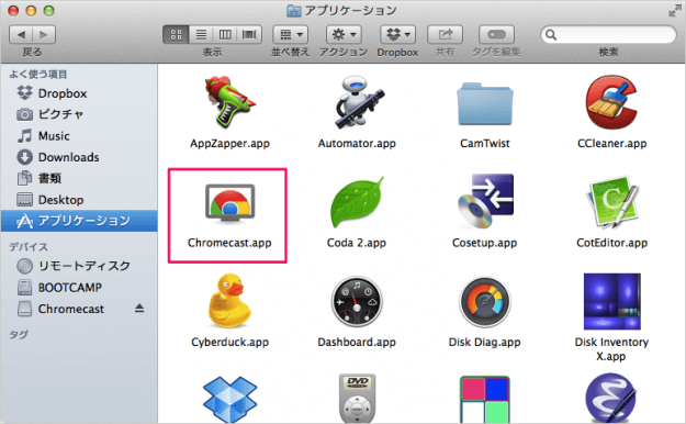 dmg 文件并将“Chromecast”拖至“Applications”文件夹。