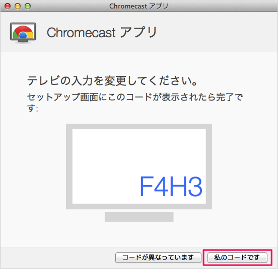 然后,代码将出现在您的 Chromecast 应用中。如果电视屏幕上出现相同的代码,请单击“这是我的代码”。