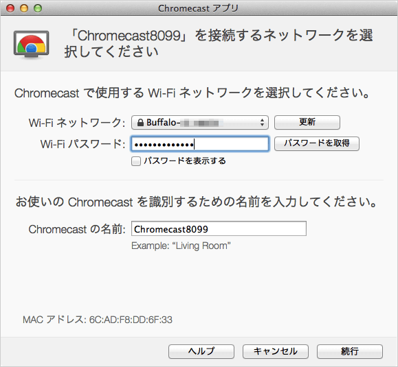 ※ Chromecastとパソコンを同じネットワークに接続しておく必要があります。