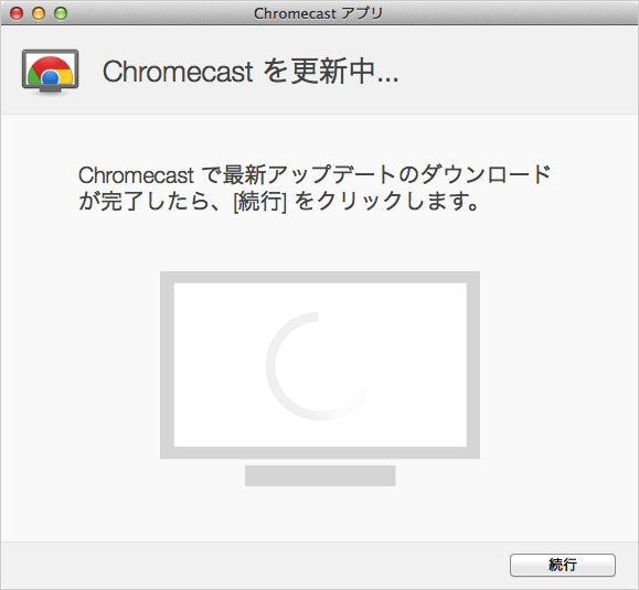 设置完成并且网络连接到 Chromecast 后,固件更新就会开始。