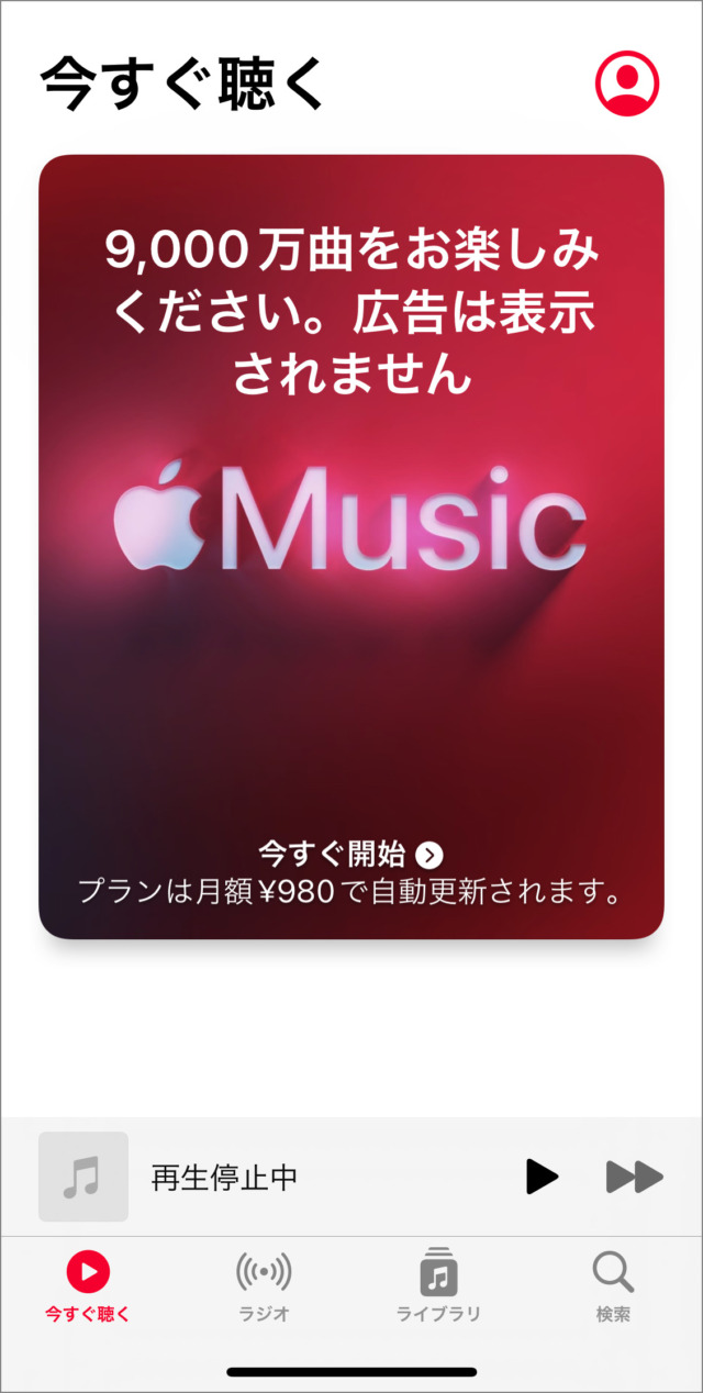 将显示 Apple Music 广告(介绍屏幕)。