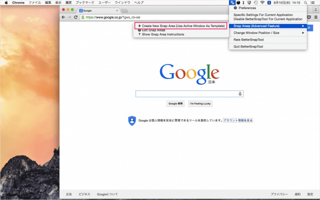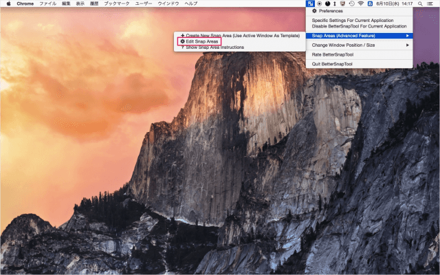 从顶部菜单的“BetterSnapTool”图标中单击“捕捉区域”→“创建新捕捉区域”。