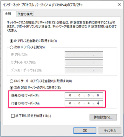 - 将 DNS 服务器设置为“8.8.8.8”。和“8.8.4.4”