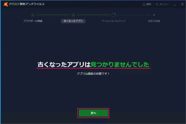 扫描过时的应用程序。如果显示“未找到过时的应用程序”,则没有问题。单击“下一步”。