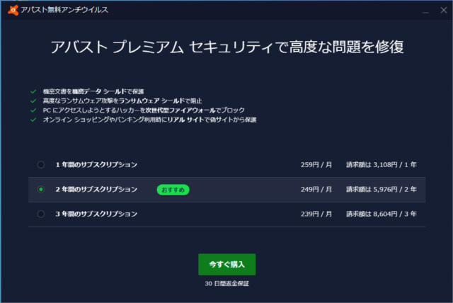 隆重推出 Avast Premium。如果您有兴趣,可以免费试用 30 天。单击右上角的“X”关闭该窗口。