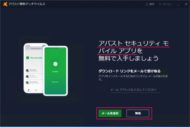 Avast 安全移动。如果您有兴趣,请输入您的电子邮件地址,然后单击“发送电子邮件”。否则,单击“忽略”。