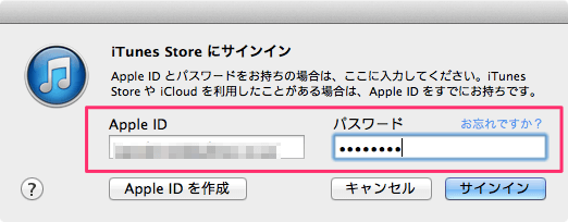 ※ Apple IDを持っていない方は「Apple IDを作成」をクリックし、アカウントを作成しましょう。