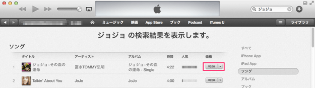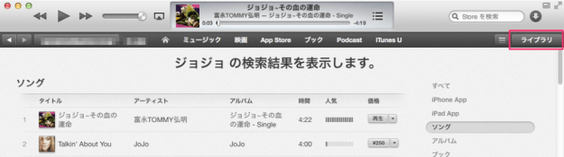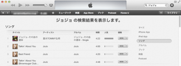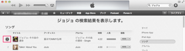 然后,将搜索到商店并显示“iPhone应用程序”、“iPad应用程序”等,因此单击右侧栏中的“歌曲”或“专辑”。