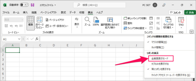 当您进入全屏模式时,“功能区”和“菜单”将被隐藏,因此增加可见单元格行数你可以。因此,当您想要在笔记本电脑等小分辨率显示器上确保 Excel 的工作空间时,它非常有用。