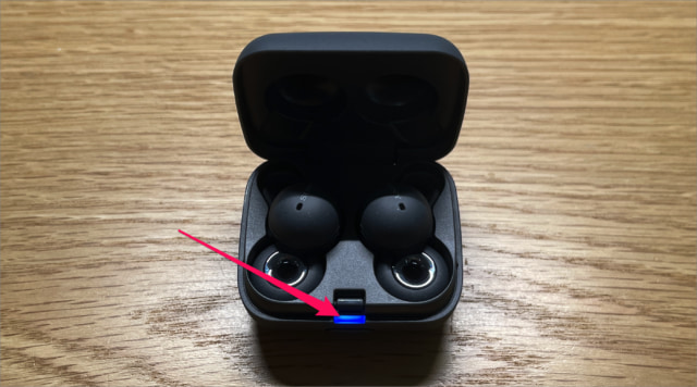 将 LinkBuds(无线耳机)放入充电盒中,然后打开盒盖。