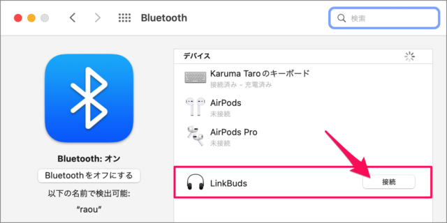 通过蓝牙将“LinkBuds”连接到您的 Mac。