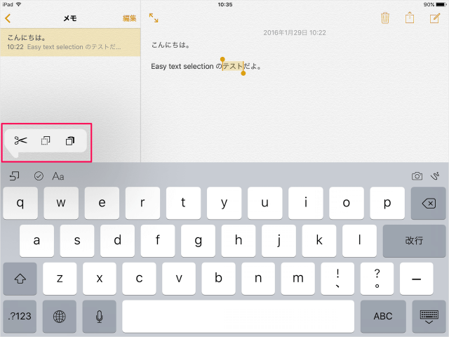 iPad – 光标移动/文本选择和复制/粘贴 – 轻松文本选择、快捷栏