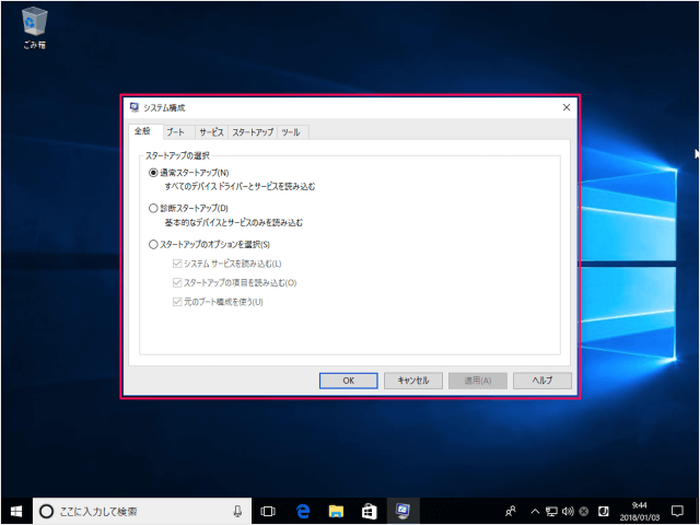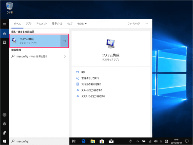 在任务栏上的表单(搜索框)中输入“msconfig”。