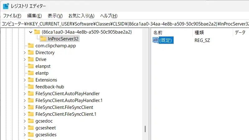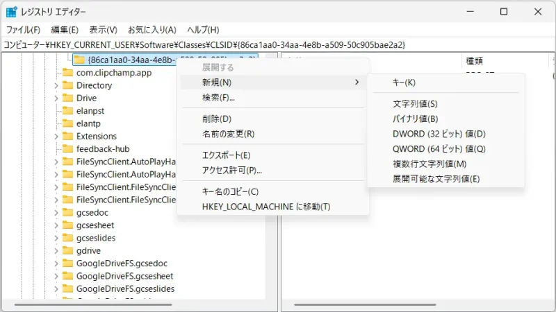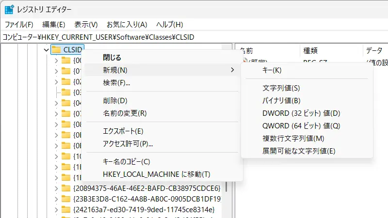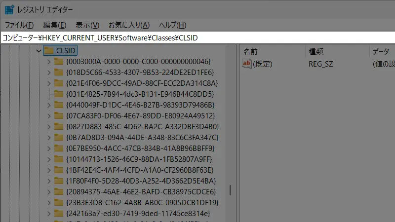 コンピューターHKEY_CURRENT_USERSoftwareClassesCLSID