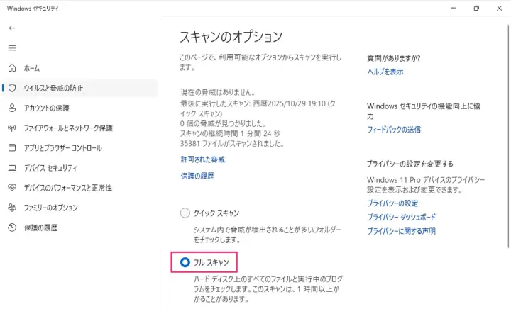 为了确保万无一失,请在 Windows 11 上运行快速扫描或全面扫描。