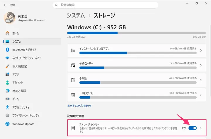 Storage Sense 是 Windows 11 标配的自动清理功能。