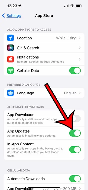 禁用此選項後,您的 iPhone 13 將不再自動更新應用程序。相反,您必須通過訪問 App Store 並選擇“更新”來手動更新您的應用程序。