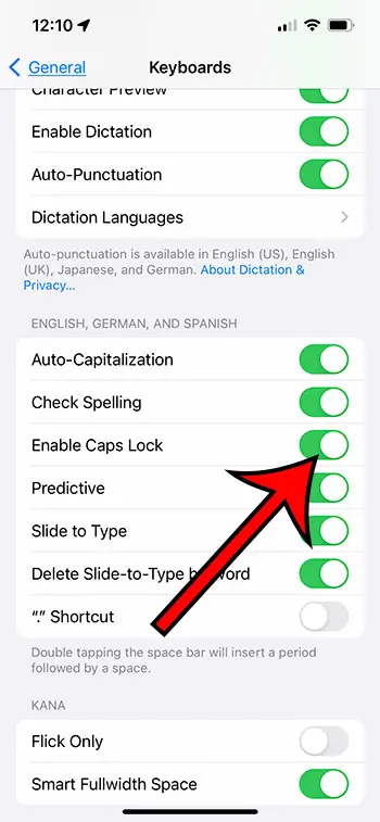 - 切換旁邊的開關啟用大寫鎖定將其打開。
