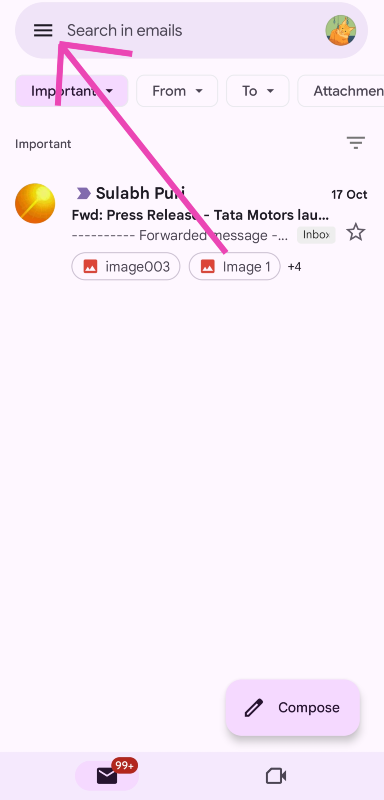 步驟一: 發射智能手機上的 Gmail 應用程序。