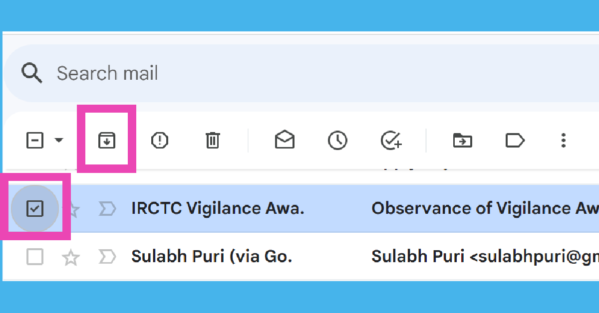 要在 Gmail 上存檔電子郵件,只需單擊旁邊的複選框,然後點擊頂部工具欄中的存檔圖標即可。在智能手機上,只需向右滑動電子郵件即可將其存檔。