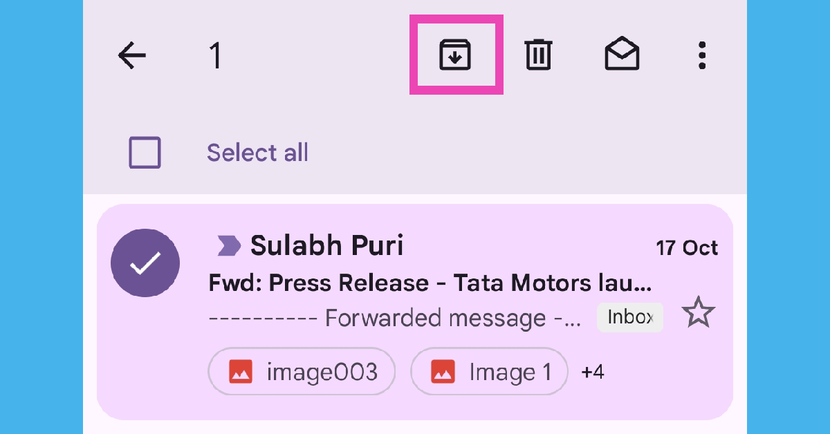 步驟3:或者,長按電子郵件並點擊存檔圖標(方框內的向下箭頭)位於屏幕頂部。