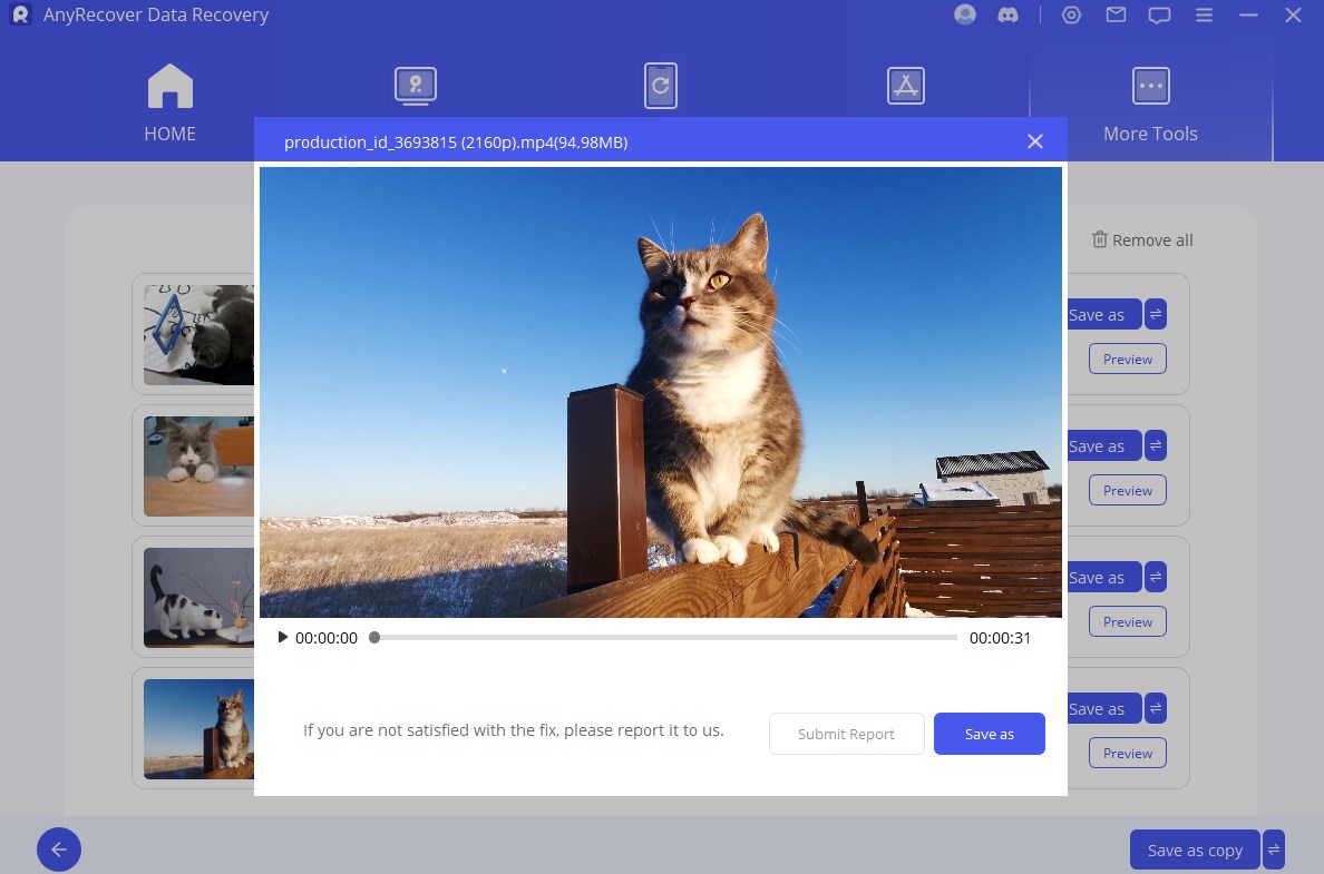 視頻可能存在一些問題,可能會導致您無法播放“錯誤代碼:102630”問題。你可以看看任意恢復修復損壞的視頻,因為它提供了出色的視頻修復功能來消除視頻損壞。除了提供簡單的用戶界面外,AnyRecover 不會影響視頻質量,保留原始質量。