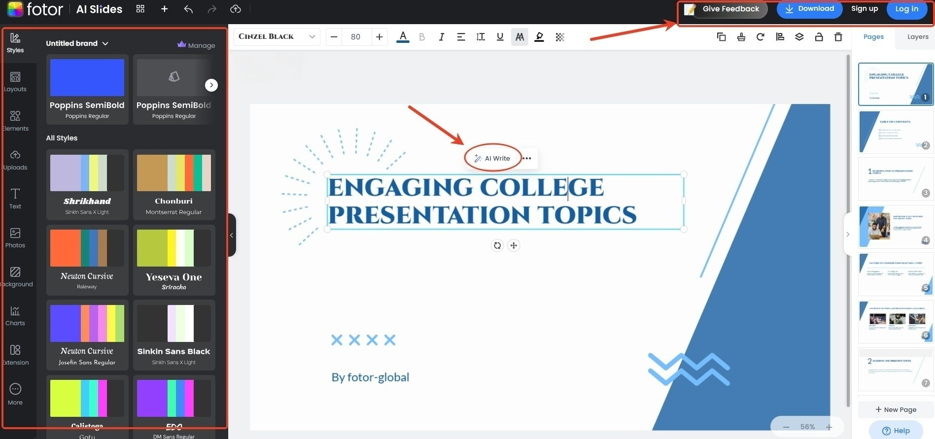 完成所有步驟後,如果您對演示文稿感到滿意,可以單擊右上角的“下載”按鈕並選擇需要下載的格式。