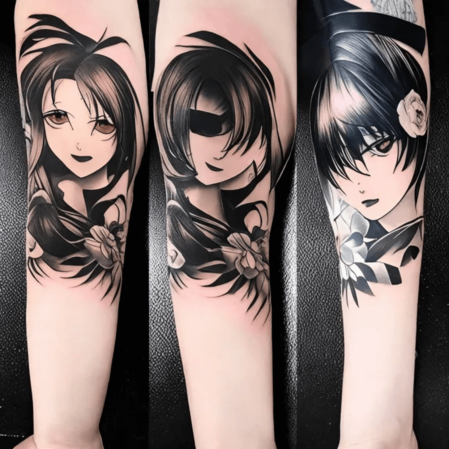 黑色墨水因其耐用性、創造對比度的能力以及跨各種風格的多功能性而成為人體藝術的首選。動漫紋身在黑色墨水中特別閃亮,提供永恆的美感。此外,黑色墨水紋身通常比彩色紋身更具成本效益且疼痛更少。