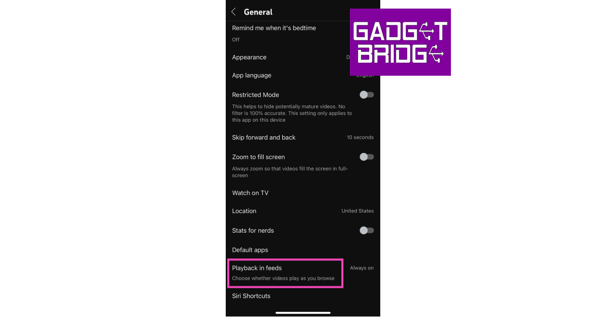 要關閉 YouTube 上的視頻預覽,請轉至個人資料>設置>常規>源中播放並選擇“關閉”。