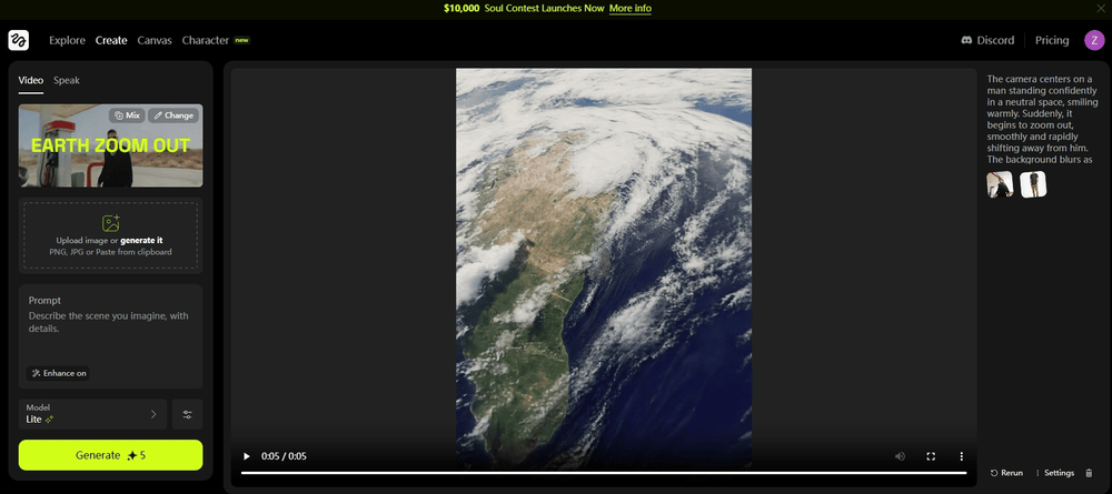 - 快速視頻生成— 在 30 秒內生成完整的地球縮小 AI 視頻。