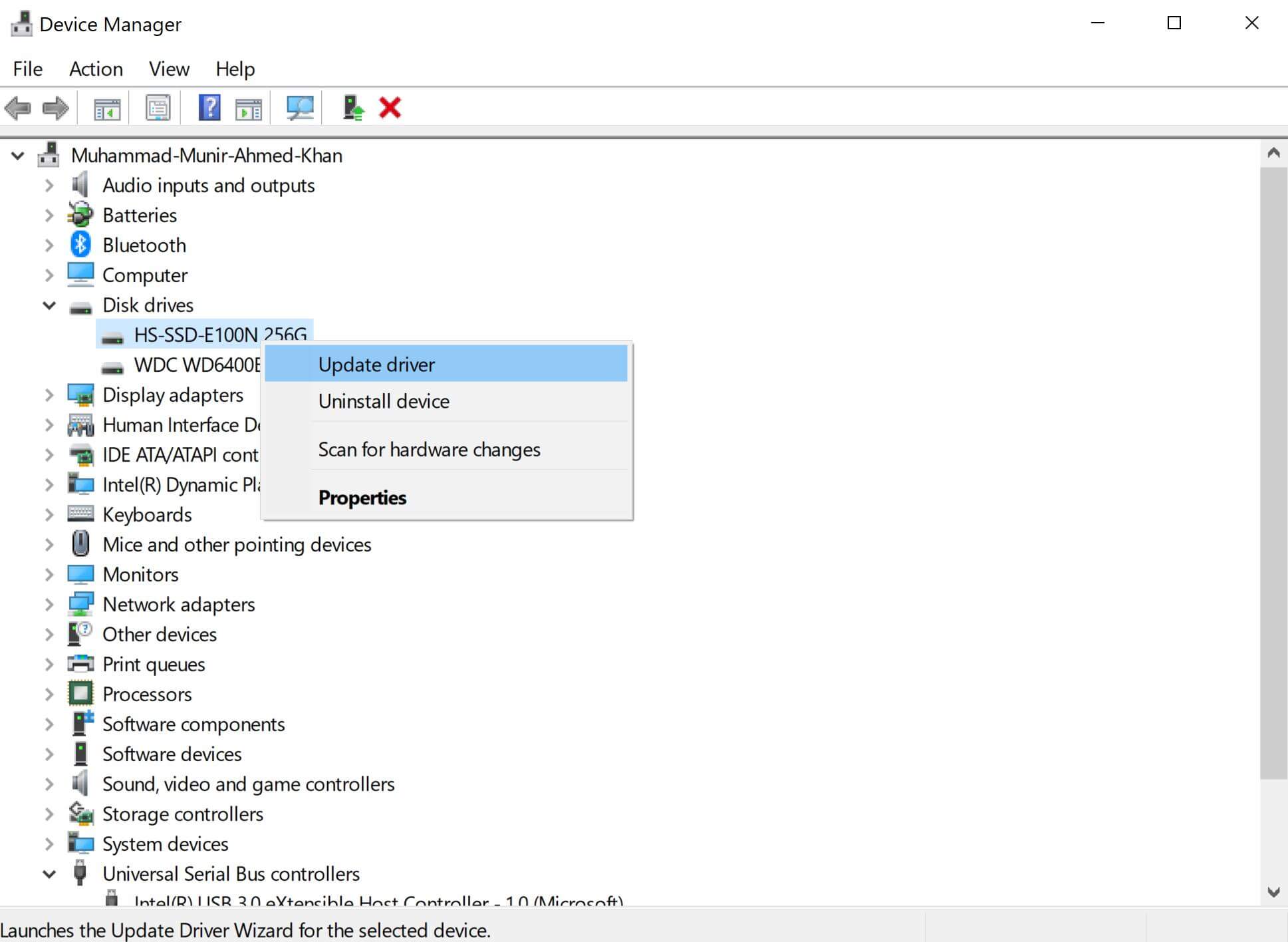 步驟2展開磁盤驅動器。您將看到驅動器選項。右鍵單擊驅動器,然後單擊更新驅動程序。