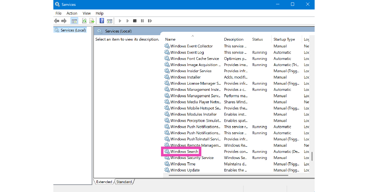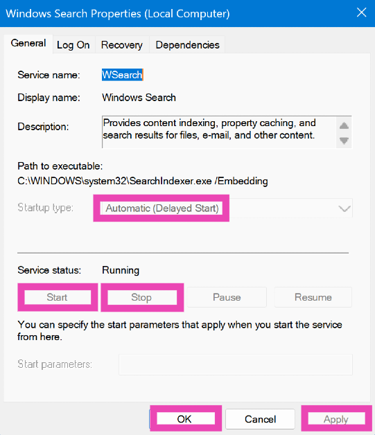停止 Windows 搜索服務並重新啟動。此外,重新啟動任務管理器中的文件資源管理器和搜索任務。